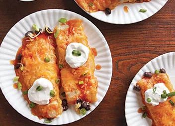 Enchiladas stammer fra Mexico, hvor udøvelsen af rullende tortillas omkring anden mad går tilbage til maya-tiderne. Denne vegetariske udgave er med sorte bønner og som andre bælgplanter, såsom jordnødder, ærter og linser, er sorte bønner værdsat for deres høje protein- og fiberindhold.