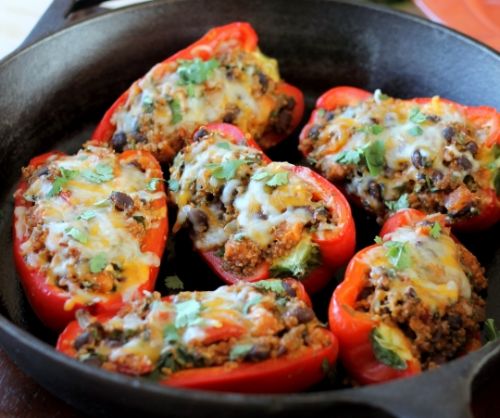 Fyldte peberfrugter med Pintobønner