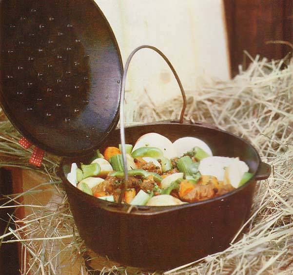 Man startede med at koge maden på komfuret, hvorefter gryden kom en tur i høkassen. Her nød maden sig godt af den naturlige eftervarme mens den passede sig selv, og før man vidste af det, var maden færdig.