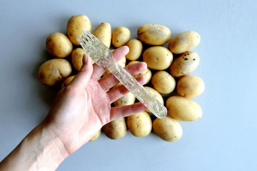 Sådan blev kartoffel plast født. Dette er et biologisk nedbrydeligt materiale, der kan bruges til at gøre ethvert objekt, der normalt er lavet med engangsplastik: fra sugerør til bestik. Derefter bliver det omdannet til kompost inden for to måneder efter brugen.