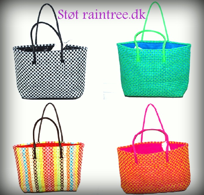 RainTree sælger unikke håndlavede tasker, lavet af en gruppe kvinder fra et af Chennais slumkvarterer – Projektet har til formål at skaffe arbejdspladser i slummen for de mest udsatte og er selvfølgelig Fair Trade godkendt, hvilket bl.a. betyder at der er velordnede arbejdsforhold og absolut ingen børnearbejde. Børnenes skolegang prioriteres højt og for hver solgt taske går der et beløb til en fond, som sikrer børnenes skolegang og læge- og medicinhjælp, hvis der er brug for det.