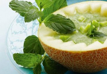 ForretterOpskrifterSalat & Suppe Kold melonsuppe Galiamelon indeholder en del kalk til dine knogler og A-vitamin, som er godt for synet og slimhinderne. Honningmelon er sødere